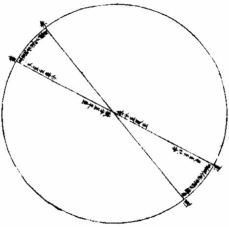 ▼天地总部汇考三 历象图说 引 忆自束发趋庭,先君子常慨小学残废,六艺失传,咿喔空文,人鲜实用,因授六书九数,俾令考索,赋畁鲁钝。而性癖躭奇,辄以余暇,旁涉天官乐律,凡人所不乐为者,则伏读沈思,至忘寝食。博访宿学明师,久而有得,新知执友,鲜可与言,言亦不解自用,怡悦而已。岁壬戌,有从问历象之说者,篝灯商确,随笔记之。说所难明,又先为之图,图说各二十余篇,实未定稿也。其八月,已有举予图说锓之于板者,后又以图说属余增补批注而别刻之。然此直据一时问答,姑指大凡,既多挂漏,尤恐舛讹,碌碌风尘,未遑订正也。壬午秋,访友人于半圃,以律历象数之类,垂委参考,乃别泚笔为图说若干首,较之前刻,似为精核,皆历源、历理之根柢也。由此而究心焉,期与天运符合,庶几无悞学者。因识简端,以俟君子考正焉。 浑天形体图 ![]() 浑天形体图说 言天者,惟浑天最密。天包地外,地居天中,虽实体小大悬殊,而轮周内外符合。今略举形似,姑为大小两圜。人物切附小圜而生,随所在而上戴大圜,则为天顶;其下对冲,则地底也。折取其半而直贯天地之中心为横线,曰地平,则地半与天半相应处也。天自东徂西,健运不息,有不动处为其枢纽,曰北极、南极。南北极之中,横带天纮,古称赤道,以限东西之经度,如瓜之有轮,而南北极则两端之蒂也。中上所见,北极恒出地而高,南极恒入地而隐。两极既出入于地平,其赤道遂斜倚于南方,于是有北极出地高度,又有赤道在午位地平上高度,有北极距天顶之度,又有赤道距天顶之度,度如弧背。盖天家以勾股推之,则为直线之边,以弦长当弧背,故不若浑天之密。又大圜消息,理可互求,知北极出地高弧,即知赤道距天顶之度;知赤道地平上高弧,即知北极距天顶之度,举一反三,实为易简云。 南北极差图 ![]() 南北极差图说 古人言天圆地方,天固圆矣,地果方乎?曰:言其德耳,非形之果方也。万象皆出于圆,况地凝天中,焉得不与之应?大戴礼曾子问言之矣。今观北极出地度数,南北直行輙二百余里,而高下差一度。如顺天府地平,测北极高四十度;南至云南,测北极高二十余度,愈南则极高度数愈少;至海外,则北极下至地平云。自顺天府北行至边外,测北极高六十余度,愈北则极高度数愈多;逾北海,则北极当上至天顶。可知地较天形,不啻太虚之点尘,而静处至中,轮廓周应,亦同一浑然之体。此于北极高下而验南北纬度之差者也。 东西里差图 ![]() 东西里差图说 一日之时,因日行所照而定。凡日出于东方为卯,正于南方为午,入于西方为酉。日随天左旋,一日十二时,遍历全周三百六十度,每时之行为太虚之三十度,下照于地,是生里差。东西相去三十度,先后差一时;相去九十度,先后差三时;相去一百八十度,则差半日,而昼夜相反矣。如日在东,东方之人以为午,而南方以为卯;日在西,西方之人以为午,而南方以为酉,此差三时也。日在南,南方之人以为午,而东方以为酉;又南方之午,而西方以为卯,亦差三时。然西方之卯,而东方即以为酉,则差半日矣。此之卯,彼可以为酉,则此之午,非即彼之子乎?此所谓昼夜相反者也。日之行,由时而刻分递析之;地之经,亦由度而分秒递析之。东西之差,无一不与天日相应,故名里差时刻。 各曜本天图 ![]() 各曜本天图说 各曜丽天,本皆平行,而累代测改,未易合天者,缘各居一重本天,有高下远近,又各系诸轮,为运动之本,古今推测,渐就详密。本天为大圜;度有不齐,必加减而后均,乃有第一轮圈,名为均轮;犹未均齐,必有相济乎均轮者,则第二轮圈,名为小轮;而光体所在,别有系属。〈详后次轮。〉而后周行于小轮,小轮心行于均轮,均轮心行于本天,顺逆不齐,牵引联络,而适得均齐之度。 如图,未午丑子曰各曜本重之天,天包地外,以地心为心。本重天上系均轮高丙卑辛圈,其心未在本重天,向午右行。均轮上系小轮近远圈,其心高在均轮上,向丙左行。小轮上又系光体之轮,〈次轮详后。〉在小轮上,自近向轮右行。凡本重天之均轮心,未至午三十度;均轮上之小轮心,高至甲亦三十度,古法谓之入历、入转限,新法谓之平引数;而光体之在小轮上,近至次必六十度,则加倍平引矣;本重天未至巳,六十度;均轮高至乙,亦六十度;小轮近至轮,则一百二十度;本重天未至辰、均轮高至丙,皆九十度;小轮近至远,则一百八十度;本重天未至卯、均轮高至丁,皆一百二十度;小轮近至左,则二百四十度;本重天未至寅、均轮高至戊,皆一百五十度;小轮近至小,则三百度;本重天未至丑、均轮高至卑,皆一百八十度;小轮近复至近,则三百六十度;此自最高起算也。 本重天丑至子、均轮卑至己,皆三十度;小轮近至圈,则六十度;本重天丑至亥、均轮卑至庚,皆六十度;小轮近至上,则一百二十度;本重天丑至戌、均轮卑至辛,皆九十度;小轮近至远,则一百八十度;本重天丑至酉、均轮卑至壬,皆一百二十度;小轮近至右,则二百四十度;本重天丑至申、均轮卑至癸,皆一百五十度;小轮近至行,则三百度;本重天丑至未、均轮卑至高,皆一百八十度;小轮近又至近,则三百六十度;此自最卑起算也。由此运行之迹,而别成近次轮、远虚线。本天形与本重天同大,而偏高偏卑,遂不以地为心,而别有其本天心。凡言迟速加减者,以此本天为主。以其轮圈各有大小,其行各有左右多寡,故迟速而生加减。然大小左右多寡而实皆平行,故加减而其度适均,此于无法中而有定法者也。日、月、木、火、金,其理皆同。 本