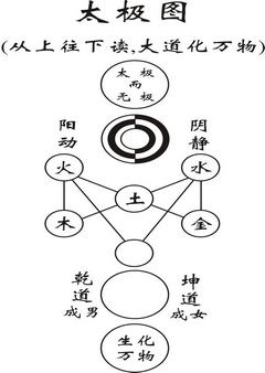 ![]() ▲太极图 自无极而为太极。 太极动而生阳,动极而静,静而生阴,静极复动。一动一静,互为其根;分阴分阳,两仪立焉。 阳变阴合,而生水、火、木、金、土。五气顺布,四时行焉。五行,一阴阳也;阴阳,一太极也;太极,本无极也。五行之生也,各一其性。无极之真,二五之精,妙合而凝。 “乾道成男,坤道成女”,二气交感,化生万物。万物生生,而变化无穷焉。惟人也,得其秀而最灵。形既生矣,神发知矣,五性感动,而善恶分,万事出矣。圣人定之以中正仁义(圣人之道,仁义中正而已矣),而主静(无欲故静),立人极焉。 故“圣人与天地合其德,日月合其明,四时合其序,鬼神合其吉凶”。君子修之吉,小人悖之凶。故曰:“立天之道,曰阴与阳;立地之道,曰柔与刚;立人之道,曰仁与义。”又曰:“原始反终,故知死生之说。” 大哉易也,斯其至矣! ![]() ▲太极图(今) |